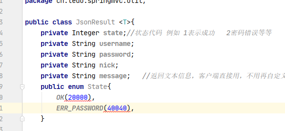 - 掌握响应JSON格式的正文时,统一的响应类型的类的设计JsonResult 信息类。