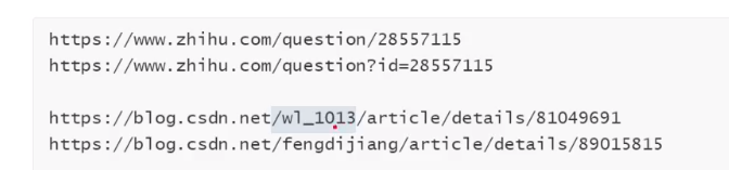 RESTful的设计风格的典型表现就是:将某些唯一的请求参数的值放在URL中,使之成为URL的一部分,例如https://www.zhihu.com/question/28557115这个URL的最后一部分`28557115` 应该就是这篇贴子的id值,而不是使用例如
