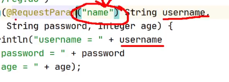 // http://localhost:8080/springmvc01_war_exploded/user/reg.do?username=root&password=123456&age=25 @RequestMapping("/reg.do") public String reg(String username, String password, Integer age) { System.out.println("username = " + username + ", password = " + password + ", age = " + age); return "OK"; }需要注意:
