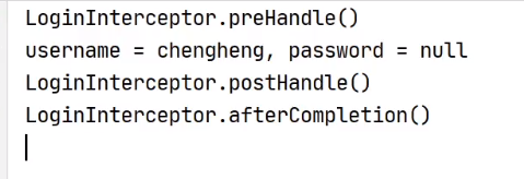 当需要使用拦截器时,首先,需要自定义类,实现HandlerInterceptor接口,例如: 实现接口后 Alt+insert ——》》implements methods public class LoginInterceptor implements HandlerInterceptor { @Override public boolean preHandle(HttpServletRequest request, HttpServletResponse response, Object handler) throws Exception { System.out.println("LoginInterceptor.preHandle()"); return false; } @Override public void postHandle(HttpServletRequest request, HttpServletResponse response, Object handler, ModelAndView modelAndView) throws Exception { System.out.println("LoginInterceptor.postHandle()"); } @Override public void afterCompletion(HttpServletRequest request, HttpServletResponse response, Object handler, Exception ex) throws Exception { System.out.println("LoginInterceptor.afterCompletion()"); } }
