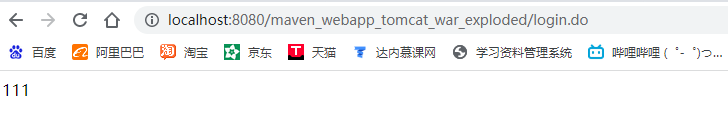 @RequestMapping("/user") public class UserController { public UserController(){ System.out.println("加载了UserController类"); } @RequestMapping("/login.do") @ResponseBody //将返回值响应到客户端 public String login(){ return "111";//浏览器不支持中文 } }在项目上就推荐类加方法,指定某个URL前缀。方便各模块同功能分开。