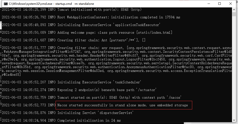 startup.cmd -m standalone启动成功