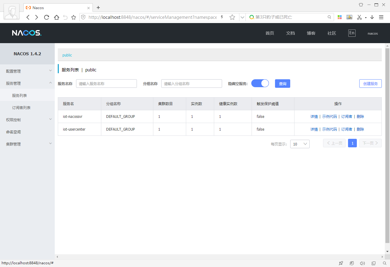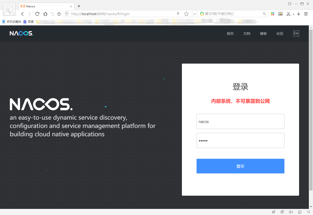 浏览器输入:localhost:8848/nacos