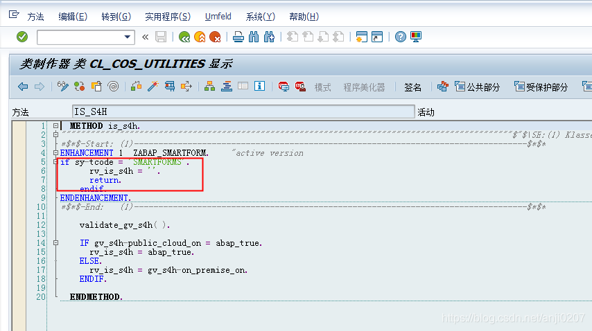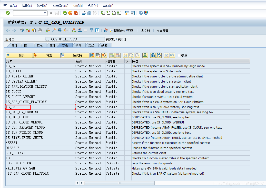 第一步:SE24 ——> 输入 CL_COS_UTILITIES——>点击显示——>双击IS_S4H进入源代码界面