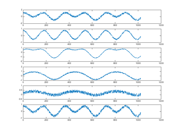 经过随机混合,由6个麦克风录制下来,则观测信号为: