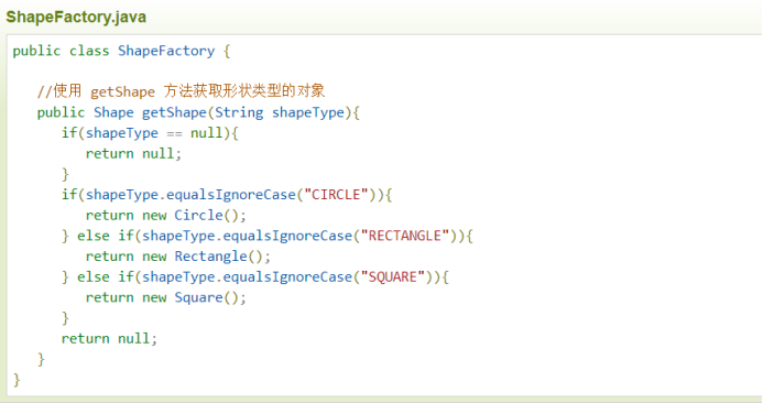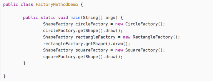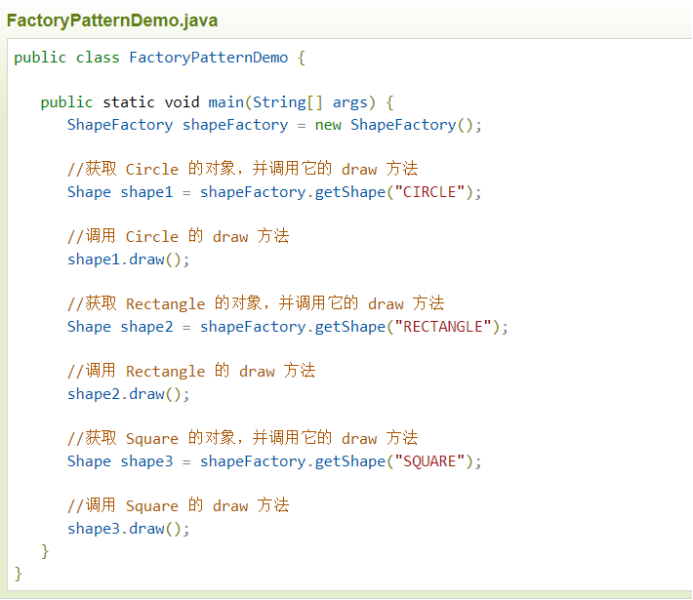 //或者多个静态方法:不需要创建工厂类实例,直接调用相应的方法。