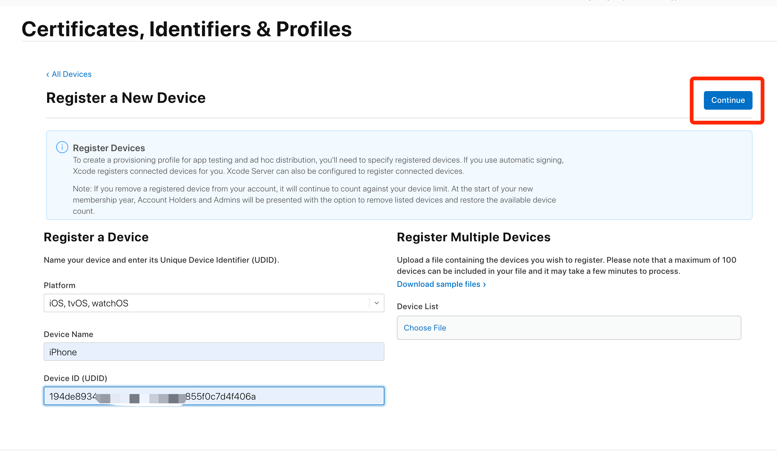 填写设备信息:UDID查看: