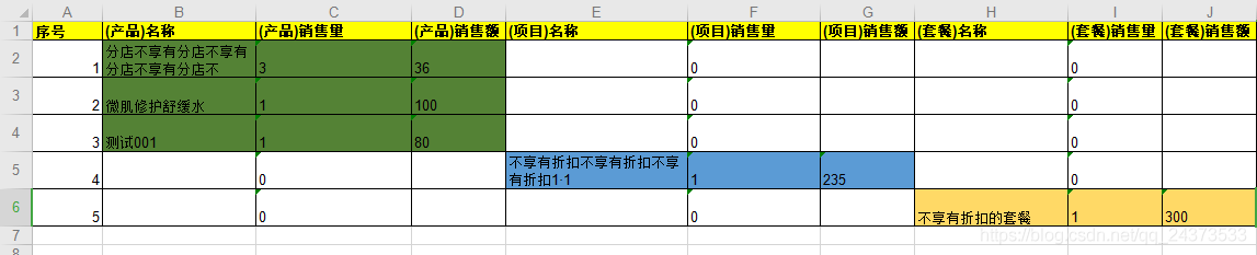 ProductSalesRankingExportVO{cpName='分店不享有分店不享有分店不享有分店不', cpSales=3, cpTotalSalesAmount=36, xmName='不享有折扣不享有折扣不享有折扣1·1', xmSales=1, xmTotalSalesAmount=235, tcName='不享有折扣的套餐', tcSales=1, tcTotalSalesAmount=300}