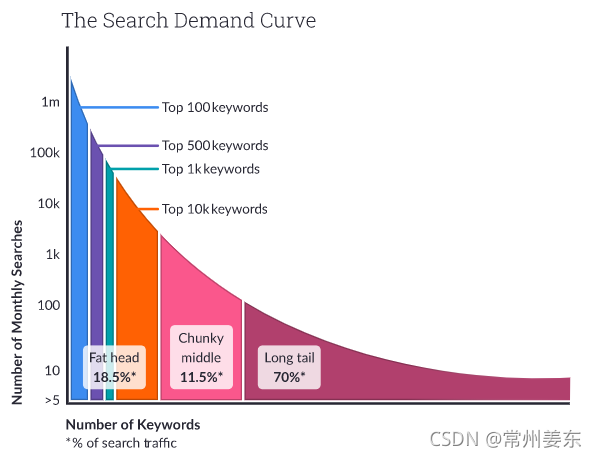 处理每月搜索 50,000 次,甚至每月搜索 5,000 次的关键字非常好,但实际上,这些热门搜索词仅占网络上执行的所有搜索的一小部分。事实上,搜索量非常高的关键字甚至可能表明意图不明确,如果您定位这些字词,您可能会面临吸引访问者访问您网站的风险,这些访问者的目标与您的页面提供的内容不匹配。