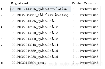 除非另有说明,否则将应用所有挂起的迁移。 如果这是第一次迁移,则会将一个名为__EFMigrationsHistory的表添加到数据库。 它用于存储此名称以及每个后续迁移应用于数据库的名称。