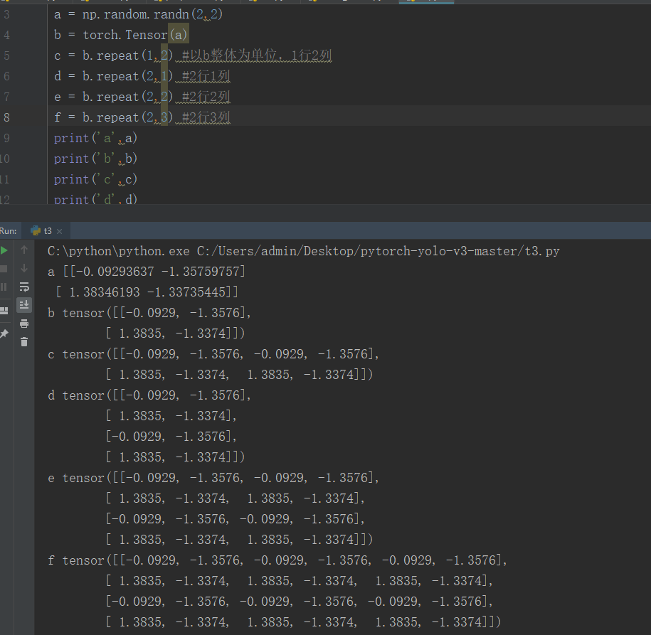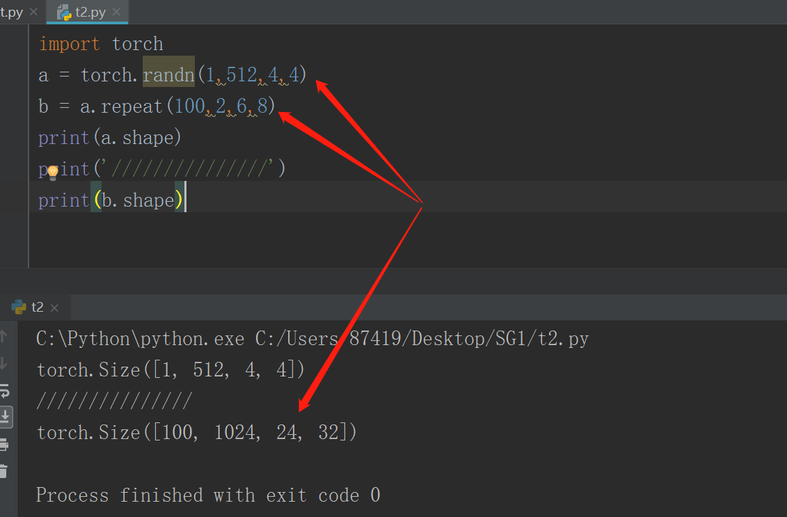 t2 = t1.repeat(3,4,5,6)#torch.Size([3, 8, 10, 18])