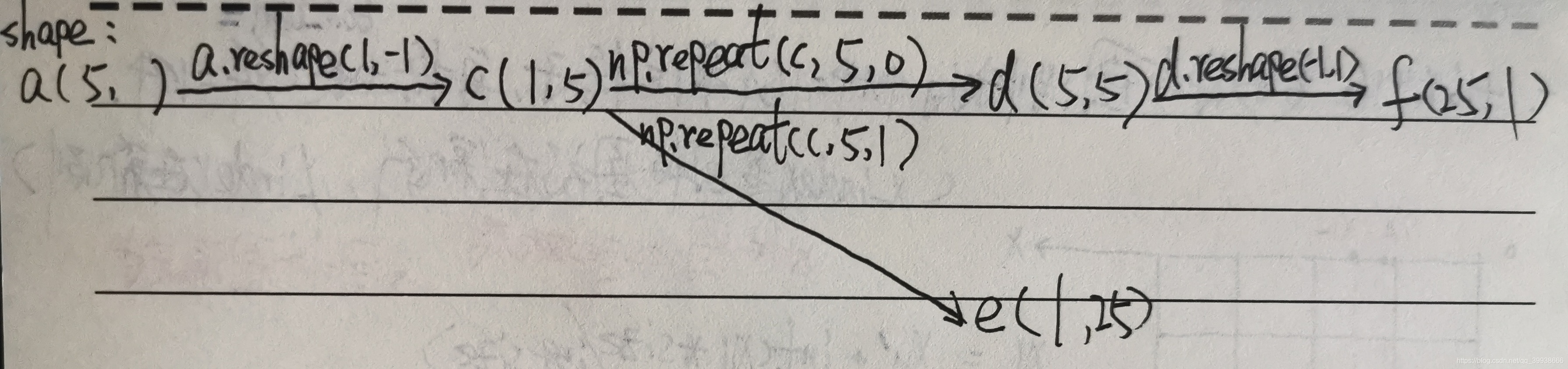 功能: 将矩阵A按照给定的axis将每个元素重复repeats次数 参数: a:输入矩阵, repeats:每个元素重复的次数, axis:需要重复的维度 返回值: 输出矩阵