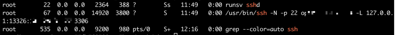 nohup /usr/bin/ssh -N -p 22 ops@11.22.33.44 -L 127.0.0.1:13306:55.66.77.88:3306 &
