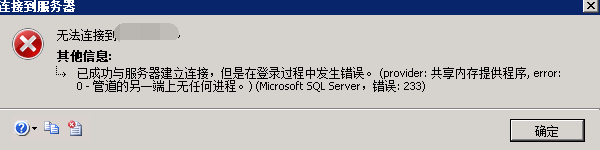 SqlServer sa登录时,报233的错误sa登录报错,如下:解决方法:打开SQL Server配置管理器->SQLServer网络配置->MSSQLServer的协议->全部启用如下:版权声明:本文为wanglijia26原创文章,遵循CC 4.0 BY-SA版权协议,转载请附上原文出处链接和本声明。原文链接:https://blog.csdn.net/wanglijia26/article/details/106850822