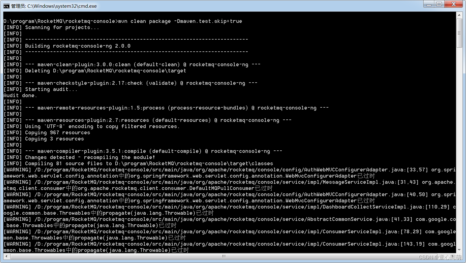 D:\program\RocketMQ\rocketmq-console>mvn clean package -Dmaven.test.skip=true