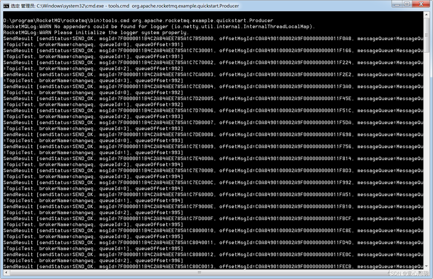 D:\program\RocketMQ\rocketmq\bin>tools.cmd org.apache.rocketmq.example.quickstart.Producer