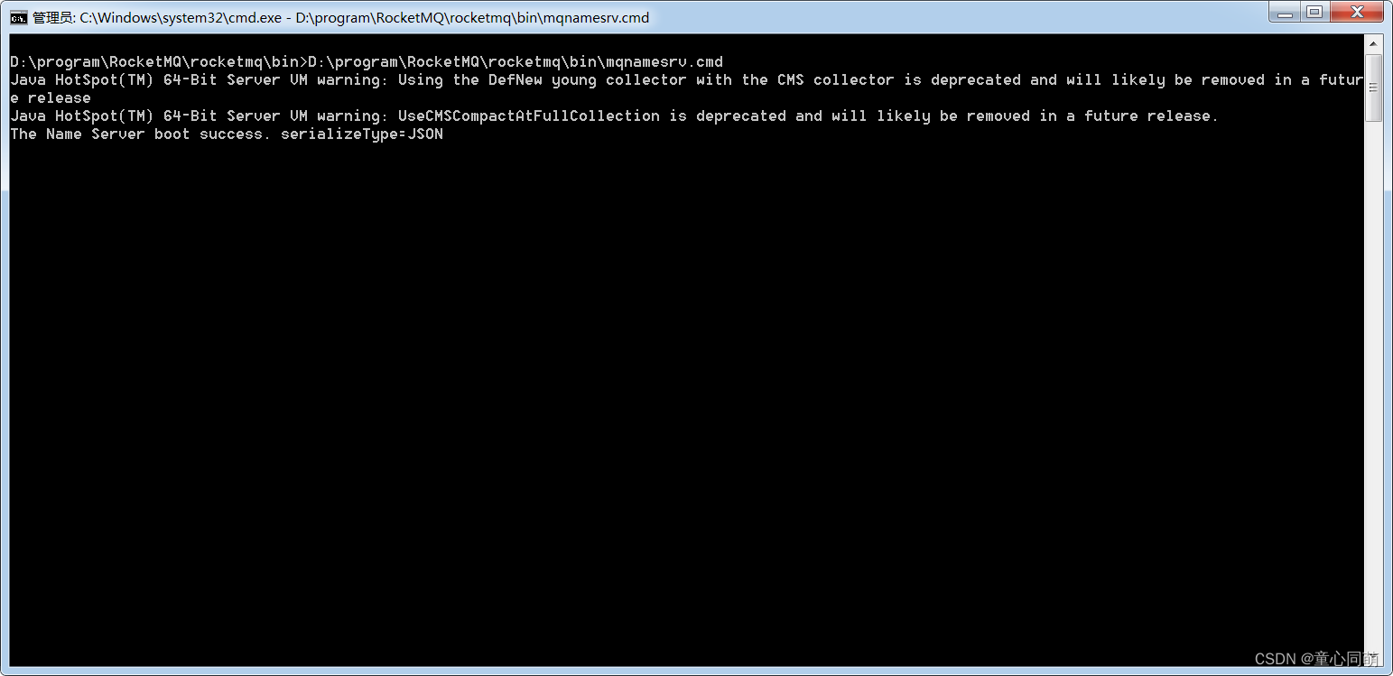 D:\program\RocketMQ\rocketmq\bin>D:\program\RocketMQ\rocketmq\bin\mqnamesrv.cmd - 启动Broker
