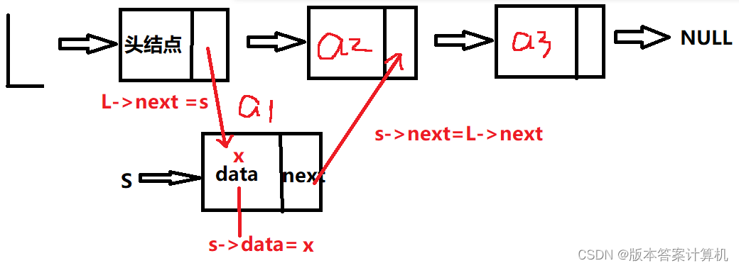 L->next = NULL; //L指向头结点,头结点的next指向NULL