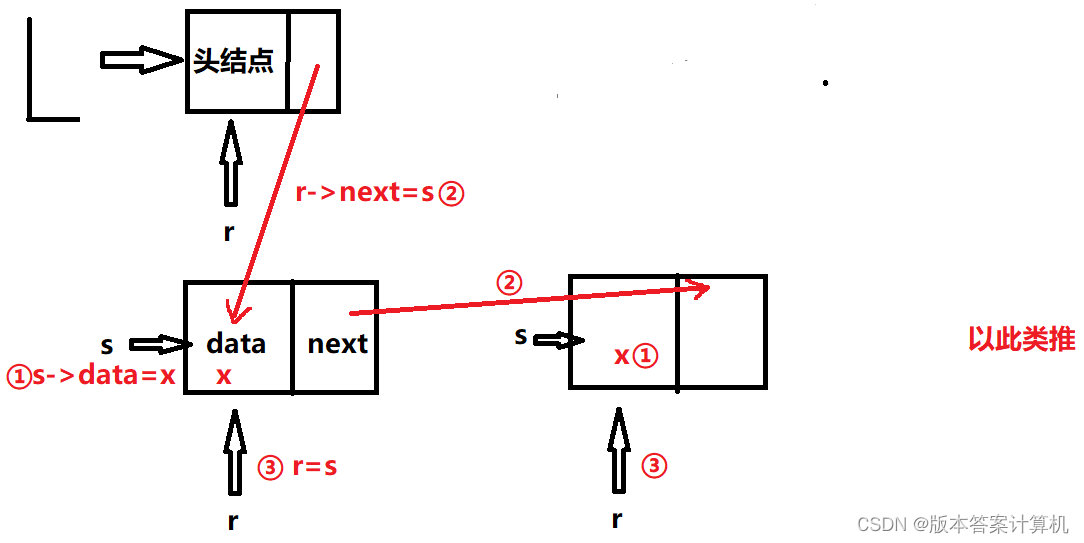 线性表的链式存储又称单链表,为了建立数据元素之间的线性关系,对每个链表的结点,除了存放自身元素(data)以外,还需要存放一个后续指针(next),其中data为数据域,next为(存放后续结点),可以通过一下代码来表示一个struct LNode类型的结点的内容: