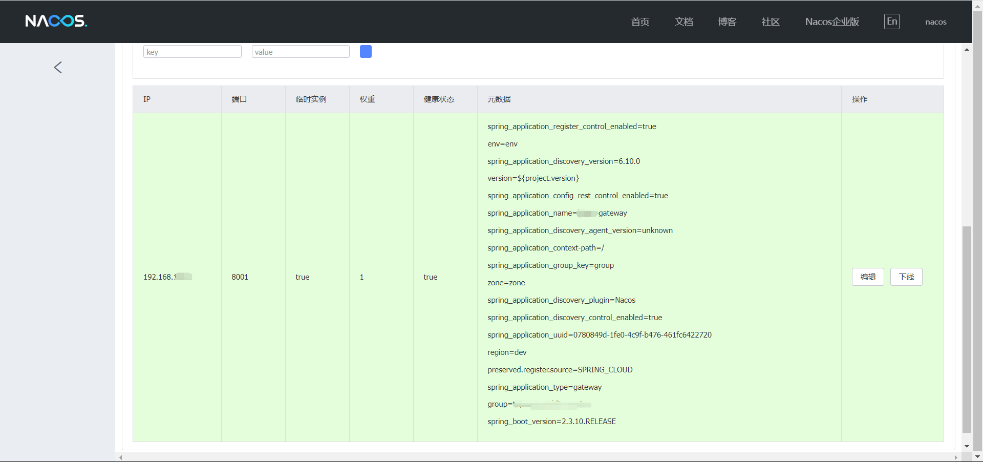 可以看见服务是正常地注册到nacos中心了,也可以进一步查看gateway服务详情来确认: