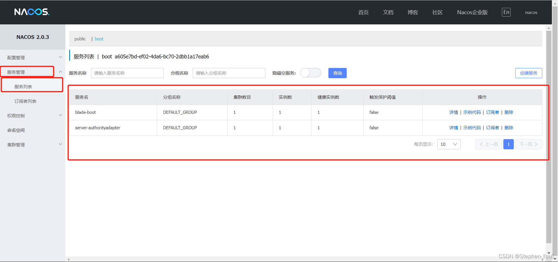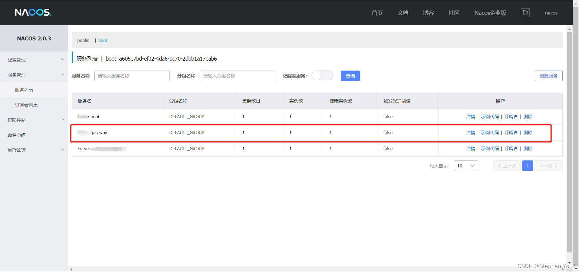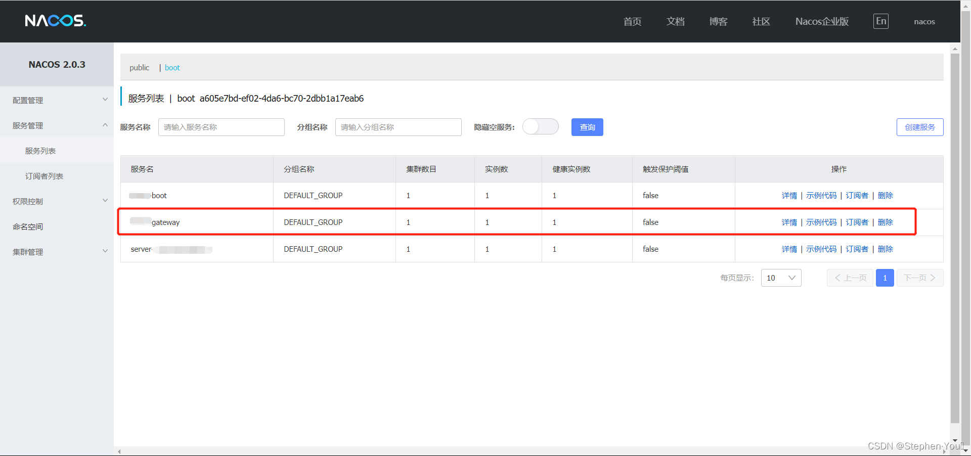 首先查看当前nacos注册中心的服务列表,可以看见并没有gateway服务: