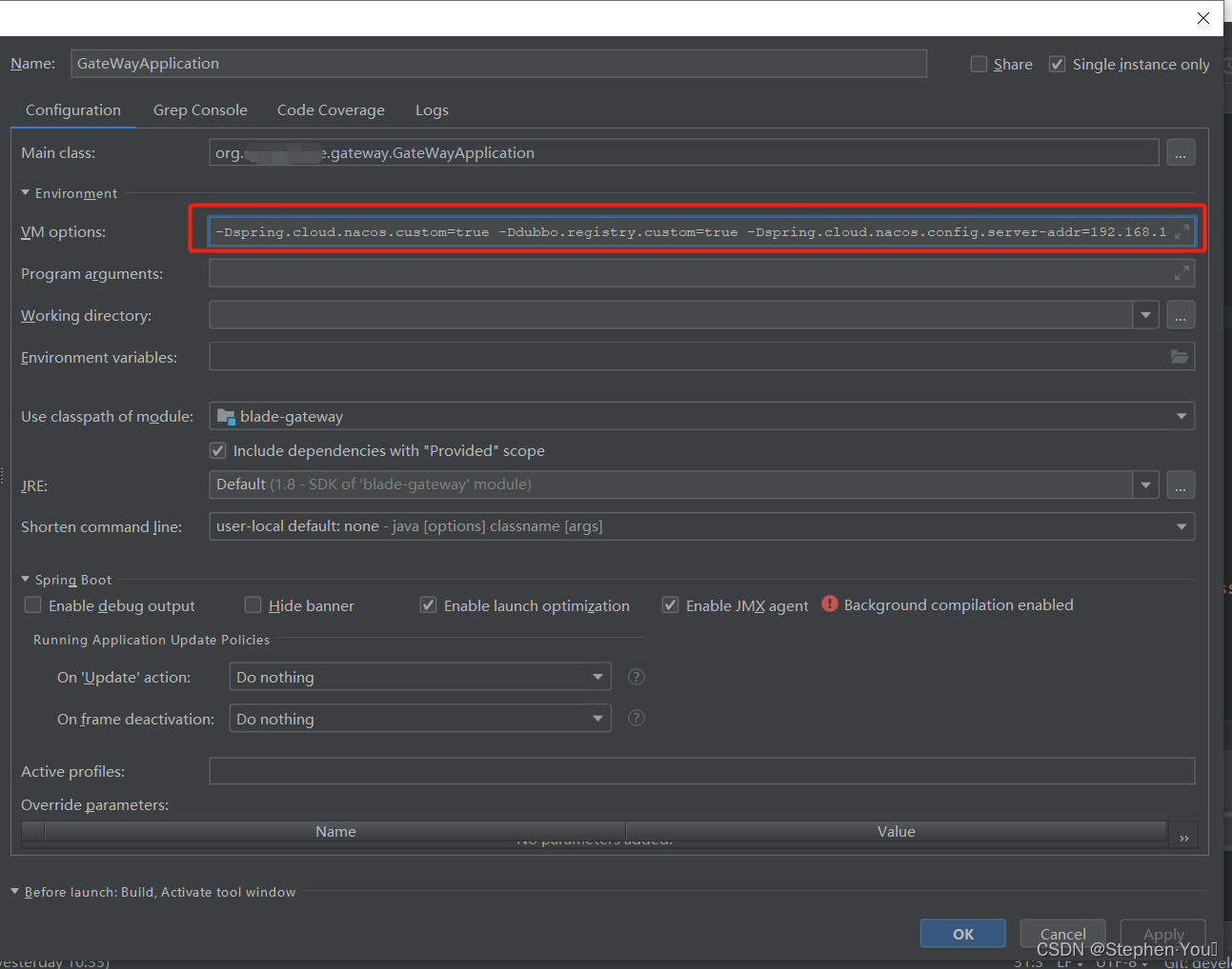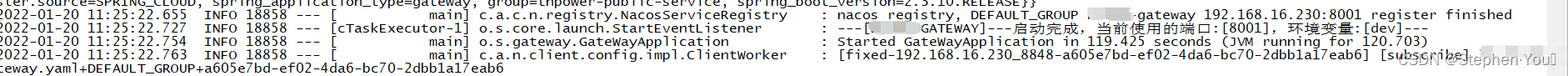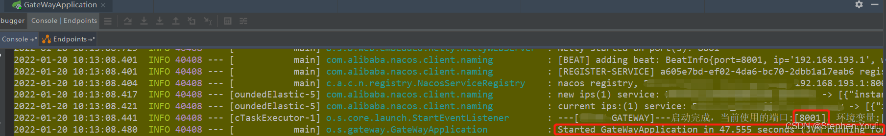 接着先在本机IDEA开发工具上测试该java服务(gateway网关服务)源码的启动是否正常,且变量参数是否可用。