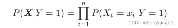 这个式子证明,在Y=1的条件下,多个特征的取值被同时取到的概率,就等于Y=1的条件下,多个特征的取值被分别取到的概率相乘。