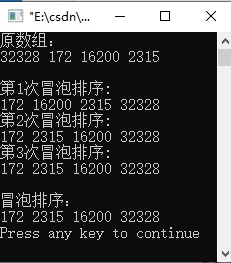 printf("\n冒泡排序:\n");