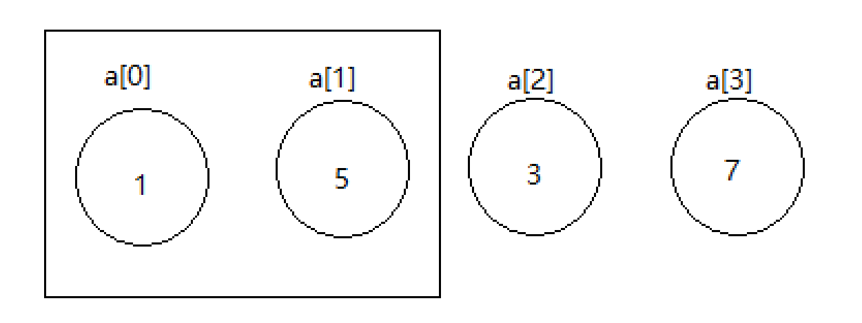 假设数组a刚开始的四个元素如下: