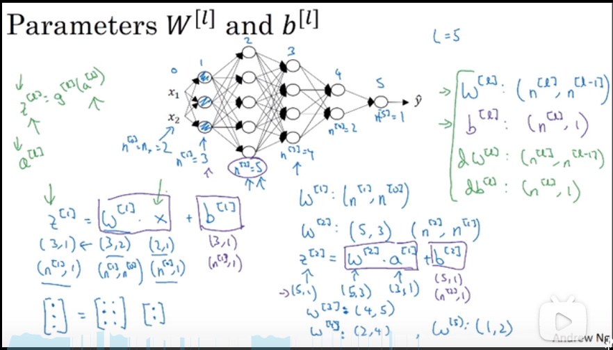 W^[l]的维度必须是( n^[l], n^[l-1] )