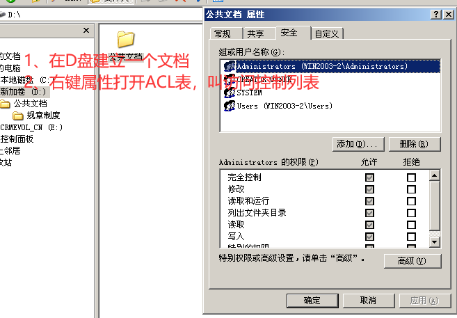 访问控制列表ACL是很严格的,如果表中没有管理员,连管理员也访问不了,权限查看都查看不了,但是能取得所有权