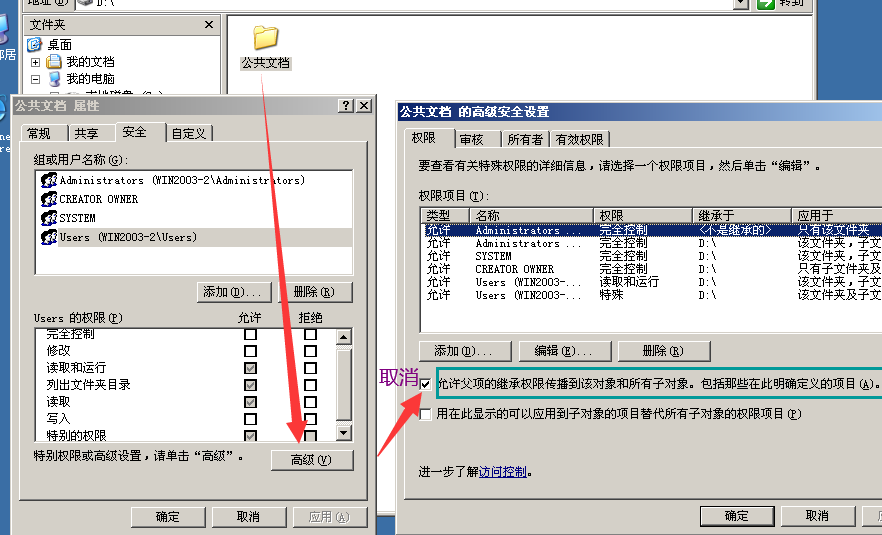 方法:文件夹右键属性---安全---高级---去掉第一个对号--选择复制即可(2008系统叫添加)