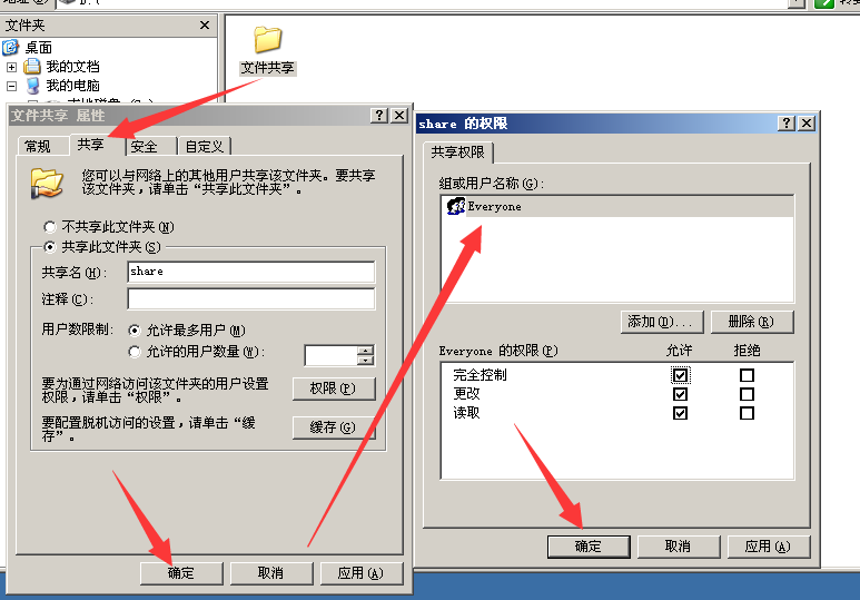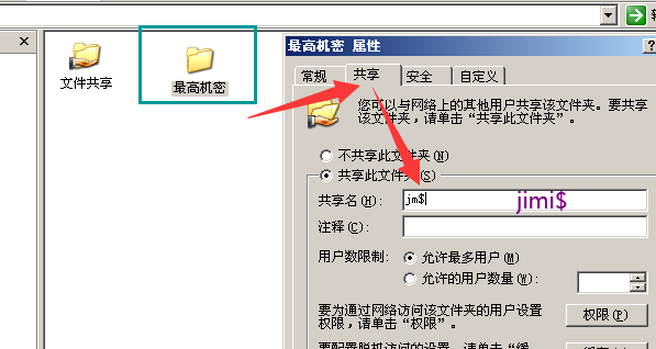 本地NTFS权限仅限 本地用户登录的控制,当用户 远程登录的时候受到共享权限和本地NTFS权限的共同影响,而且取交集( 比如运行A共享权限为读,本地NTFS权限为写,取交集A远程时什么权限都没有)这样就太麻烦了,简便方法:把本地设置为完全控制权限,取交集的时候远程登录选什么就取什么(设置共享权限在属性——》共享里面,设置本地权限在安全里面)