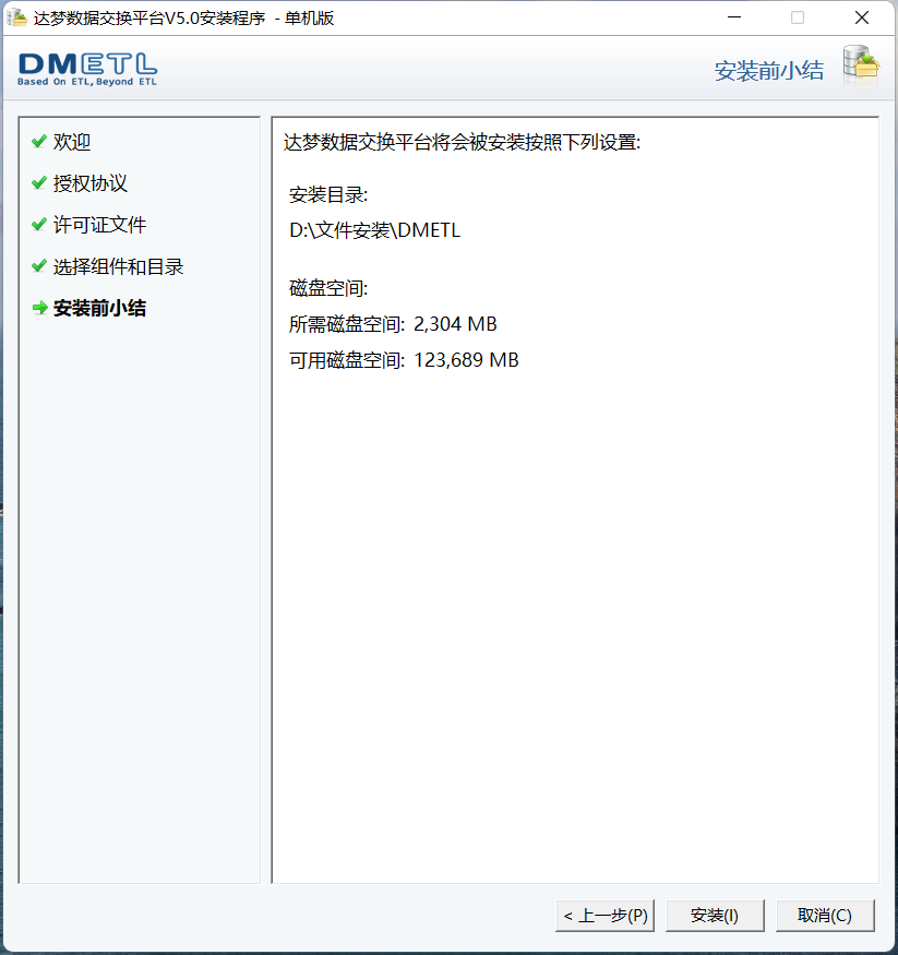 6.点击安装即可开始安装达梦数据交换平台单机版。