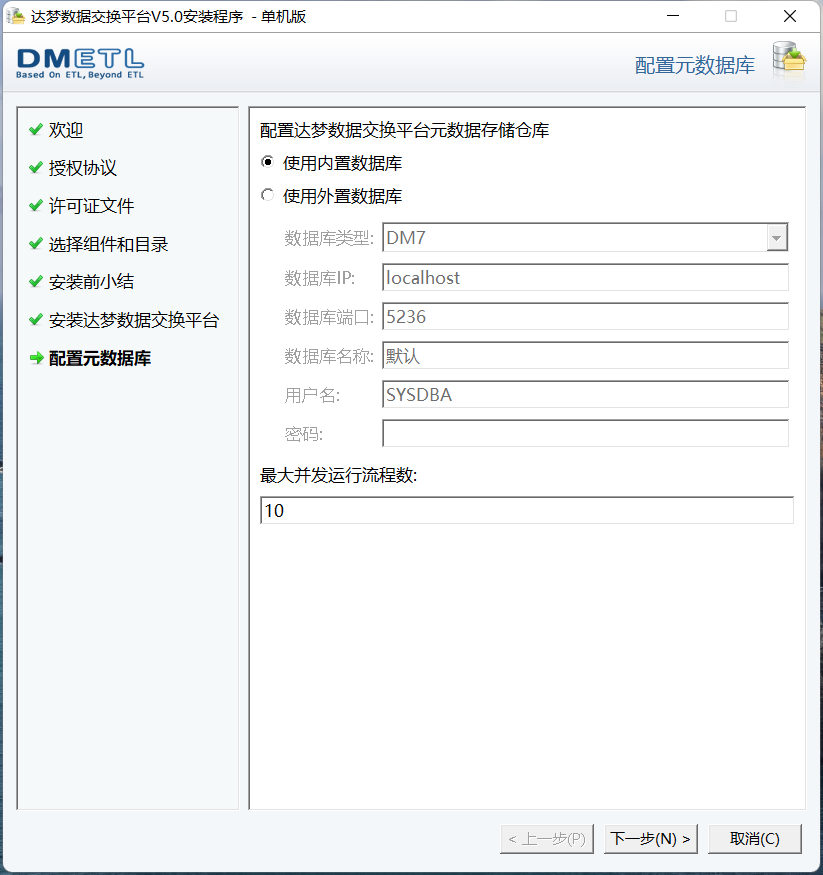 7.配置元数据库,选择内置数据库或者外置数据库