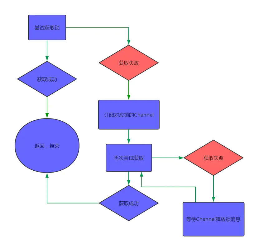 加锁的过程很简单,就是通过SET指令来设置值,成功则返回;否则就循环等待,在timeout时间内仍未获取到锁,则获取失败。
