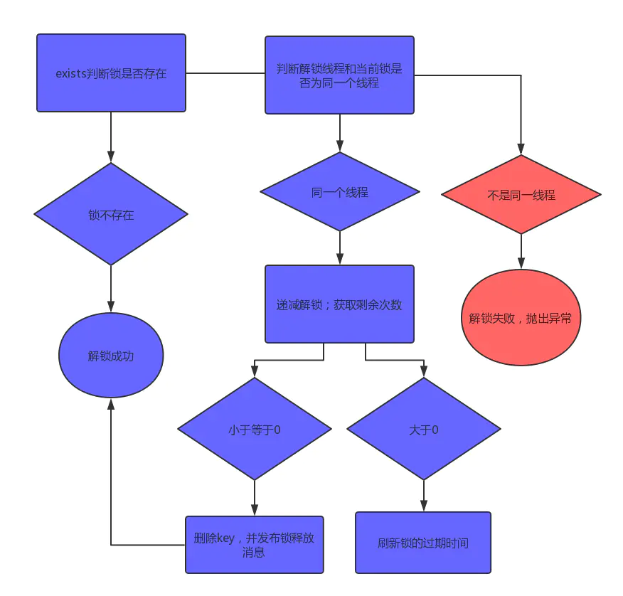 通过hincrby递减1,先释放一次锁。若剩余次数还大于0,则证明当前锁是重入锁,刷新过期时间;若剩余次数小于0,删除key并发布锁释放的消息,解锁成功