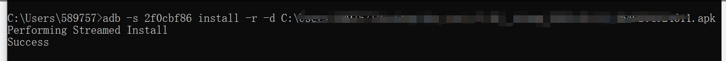 若电脑连接多个设备,语法则为:adb -s 设备号 install -r -d apk路径