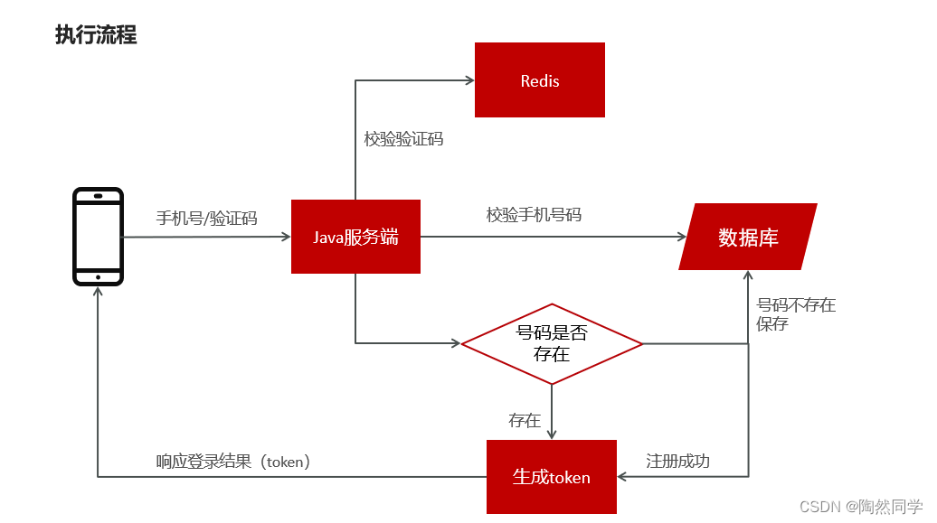 用户接收到验证码后,进行输入验证码,点击登录,前端系统将手机号以及验证码提交到服务端进行校验。