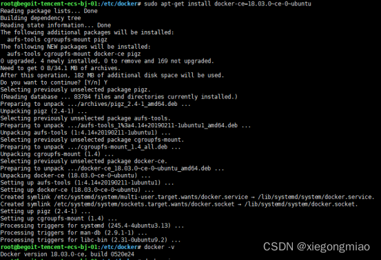 sudo apt-get install docker-ce=18.03.0~ce-0~ubuntu结果如图所示: