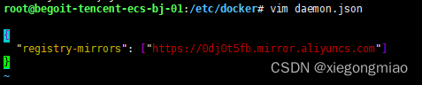 vim daemon.jsondaemon.json中写入以下内容: