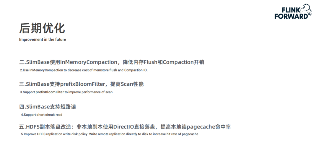 后续还有四点优化,前三点是基于 HBase 的优化,最后是针对 HDFS 做的优化: