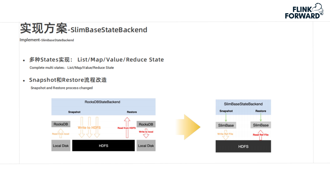另一层是 SlimBaseStateBackend,主要包含 ListState、MapState、ValueState 和 ReduceState。