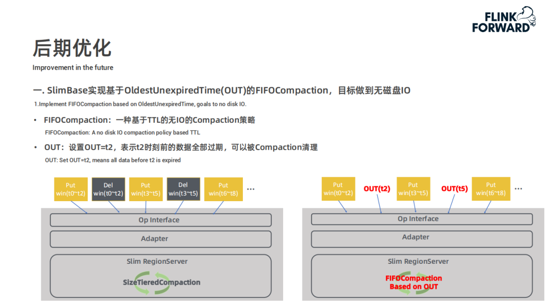 FiFOCompaction 是一种基于 TTL 的无 IO 的 Compaction 策略;OldestUnexpiredTime 是指例如设置 OldestUnexpiredTime=t2,表示 t2 时刻前的数据全部过期,可以被 Compaction 清理,基于时间点的 FIFOCompaction 理论上可以做到无磁盘 IO 开销。
