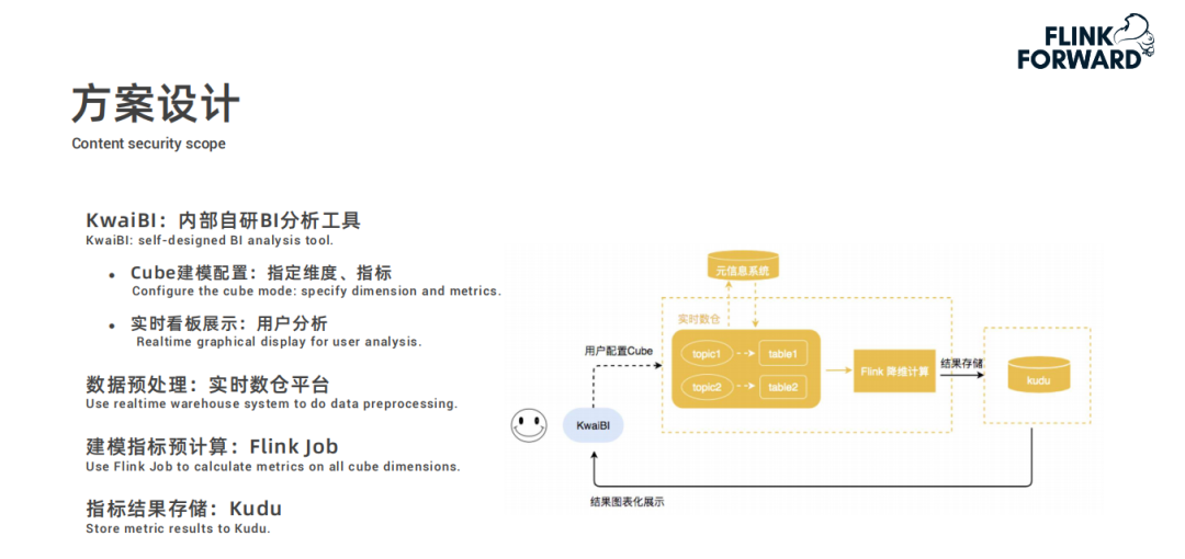 然后根据配置的计算规则通过 Flink 任务进行建模指标的预计算,结果存储到 Kudu 中;
