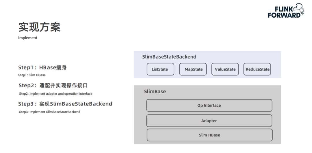 后面将从 HBase 瘦身、适配并实现操作接口以及实现 SlimBaseStateBackend 三个步骤分别进行详细介绍。