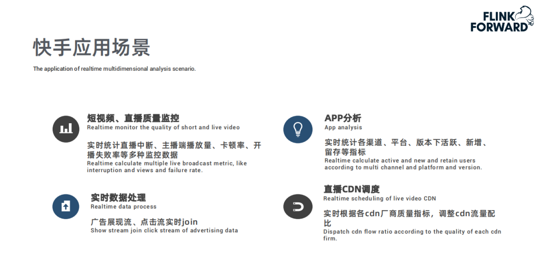Flink 在快手应用的典型场景案例包括: