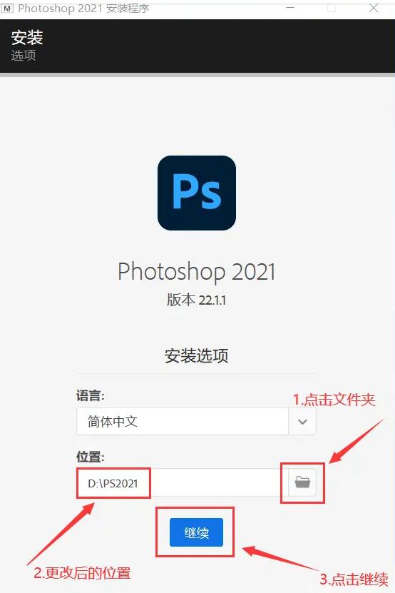 (1)首先点击文件夹图标,更改安装位置,最好别装在C盘,不然以后会卡;