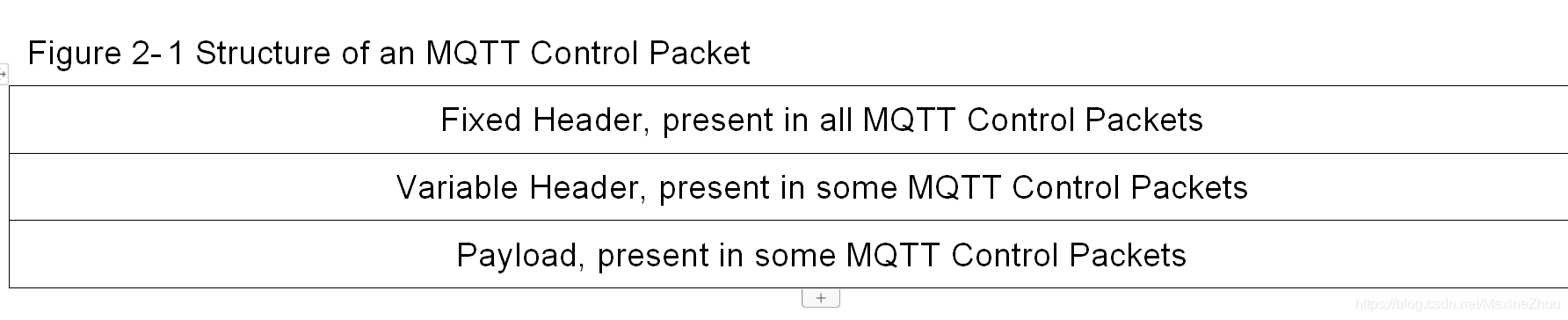 - MQTT的控制报文结构:固定头+变长头+负载消息,变长头里因控制报文类型的不同而不同,变长报文部分的最后包含了报文属性,负载消息不是所有报文都必须要有的,有些没有,有些可选的有,订阅报文一定要有负载消息